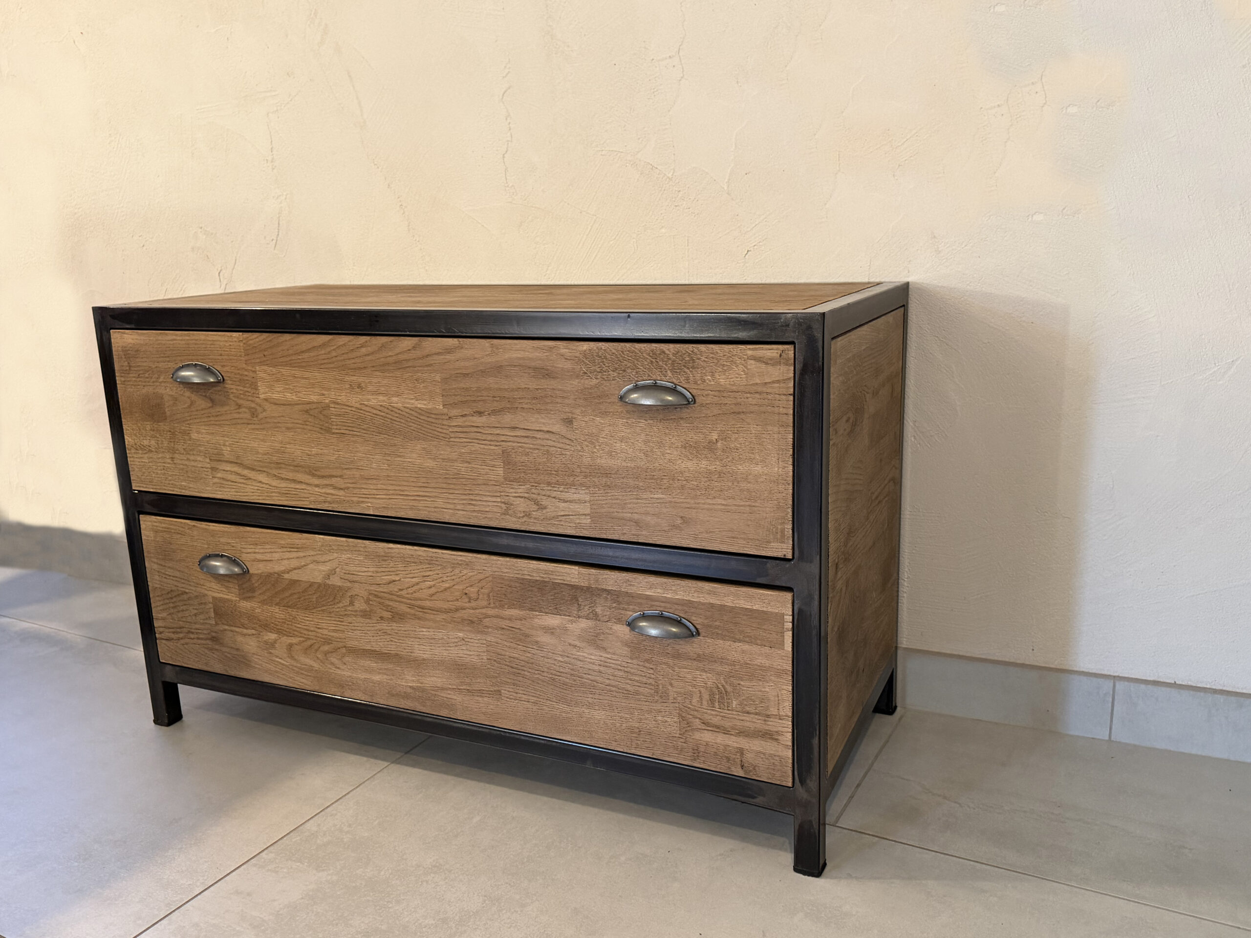 En associant le métal brut, rouillé ou satiné au bois massif (chêne, châtaigner) ou encore au verre, je donne vie à un mobilier au style industriel, à la fois épuré et chaleureux.